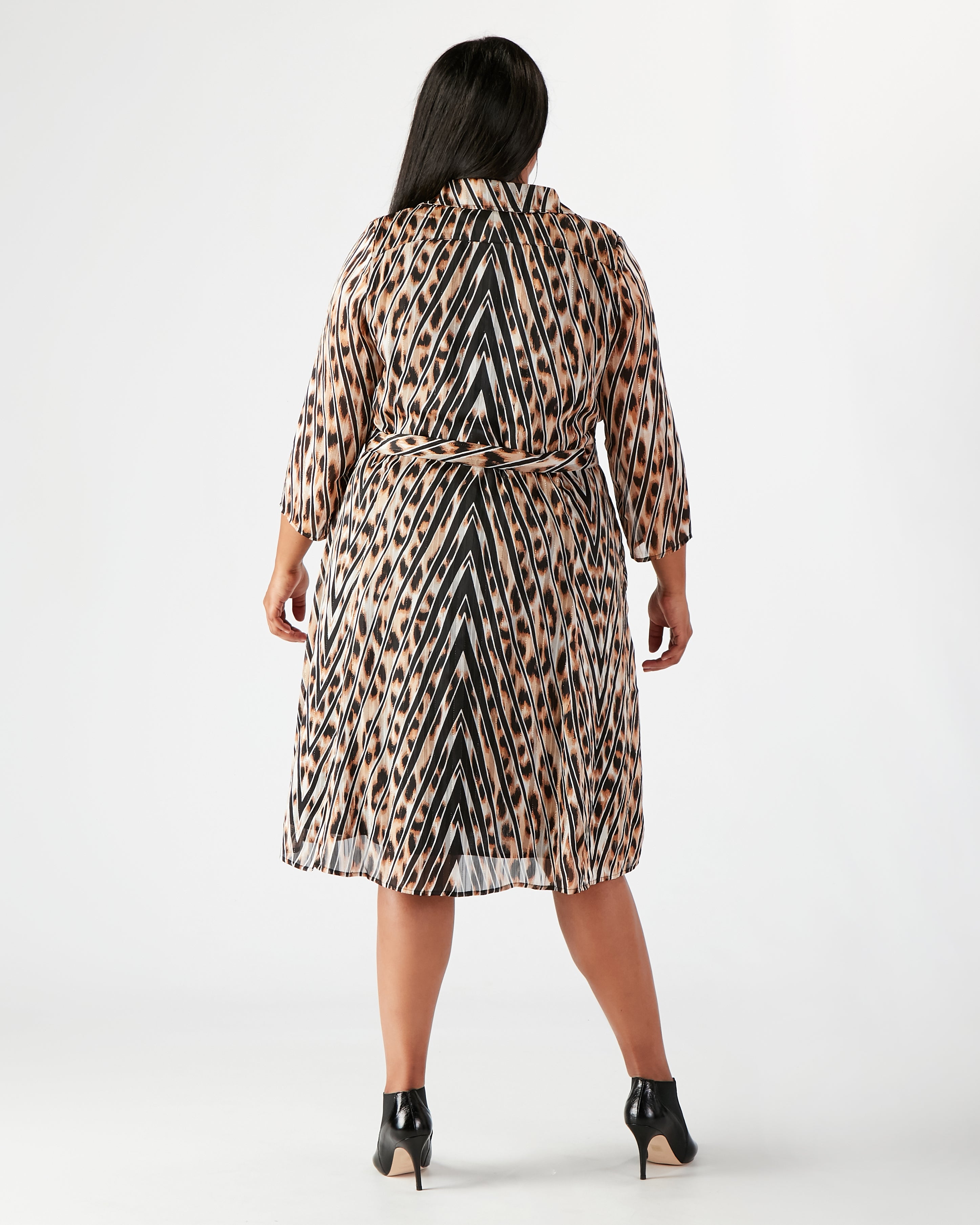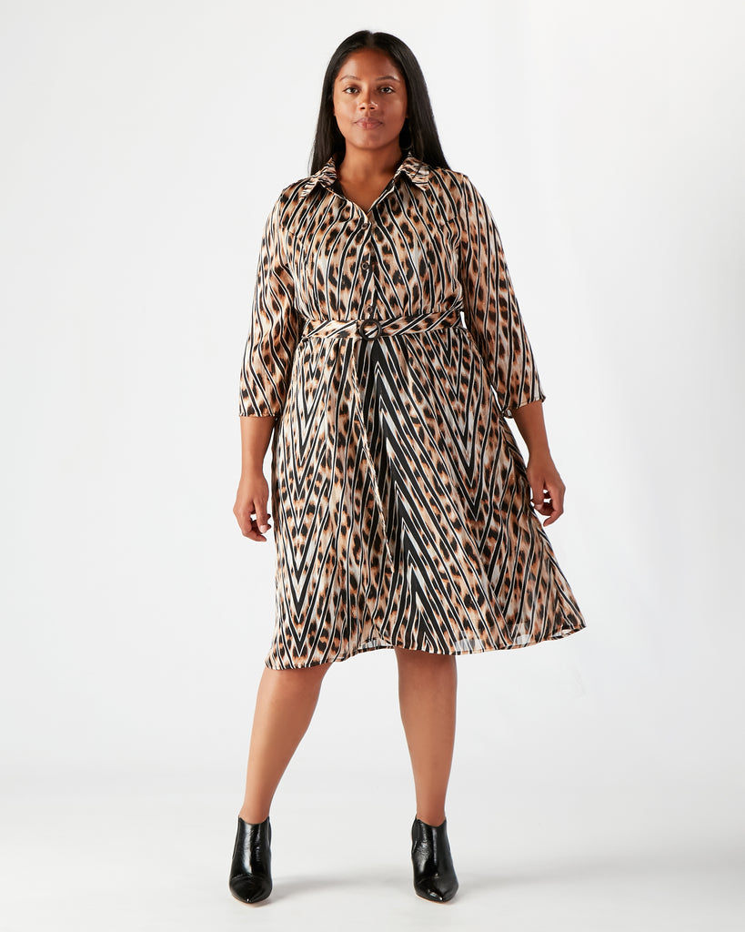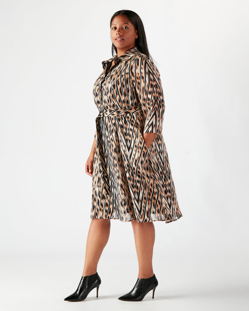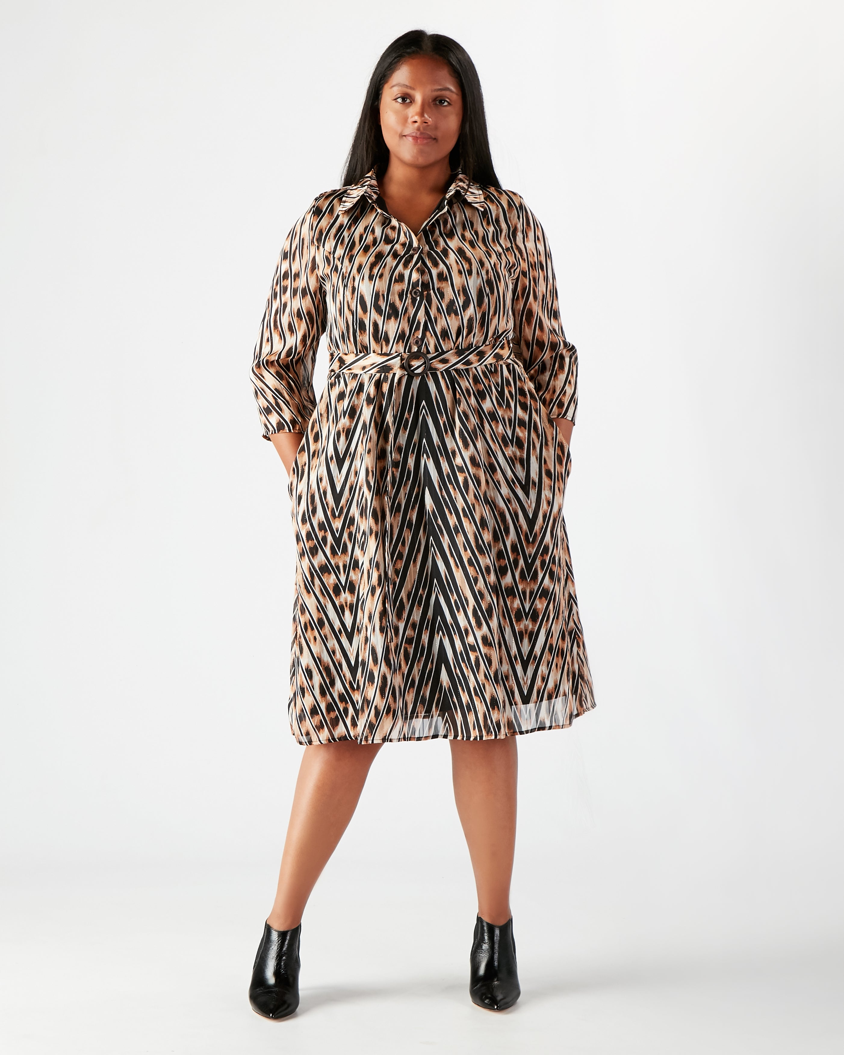 Add a touch of luxury and effortless glamour to your wardrobe with this timeless leopard print dress, featuring a distinctive chevron-striped pattern woven with shimmering copper thread. Designed to flatter, it includes princess seams that accentuate the waist and handcrafted wooden buttons thoughtfully placed to prevent gaping. A detachable belt with a custom wooden buckle offers styling versatility, while discreet side pockets add practical charm. Perfect for dressing up or down, this seasonless piece transitions beautifully through the year.