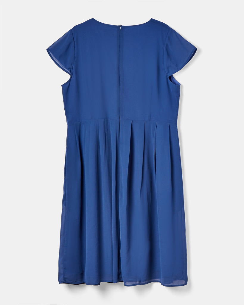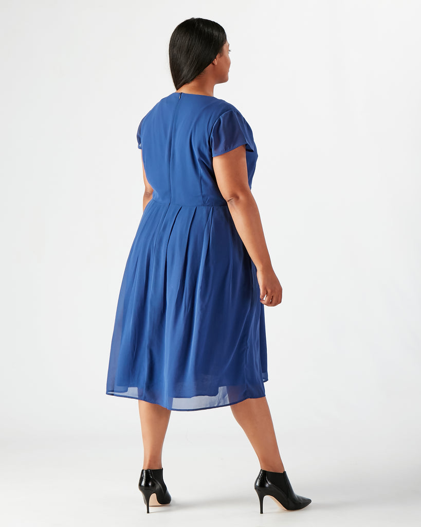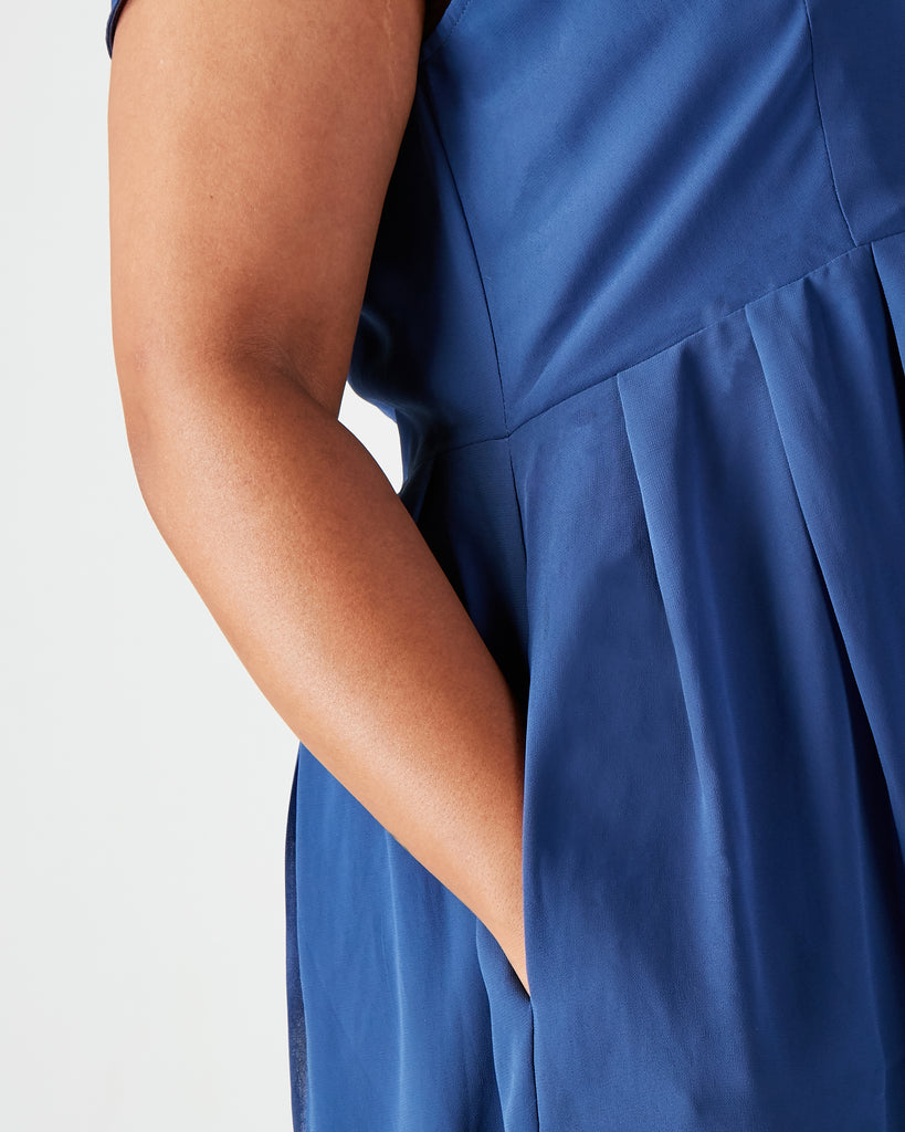 Make a statement in this elegant royal blue midi dress, designed with softly structured pleats and a gently curved V-neckline for a flattering, feminine silhouette. Fully lined for all-day comfort, it features a concealed back zip for a smooth finish and discreet side pockets for everyday ease.