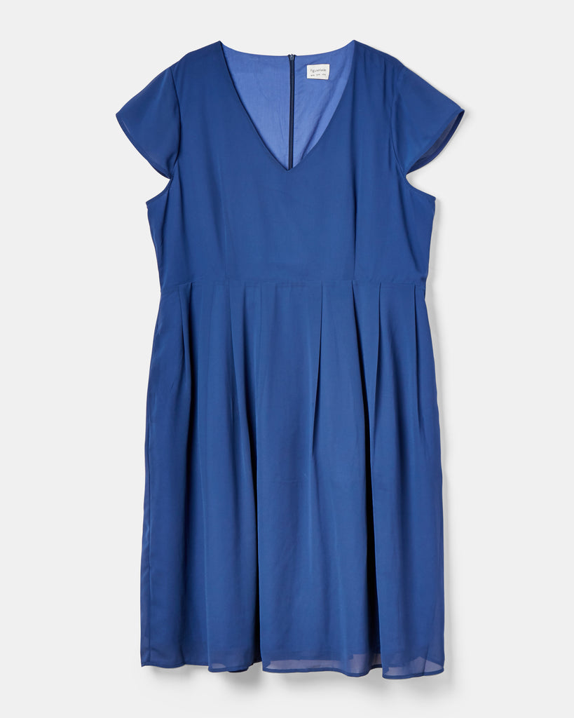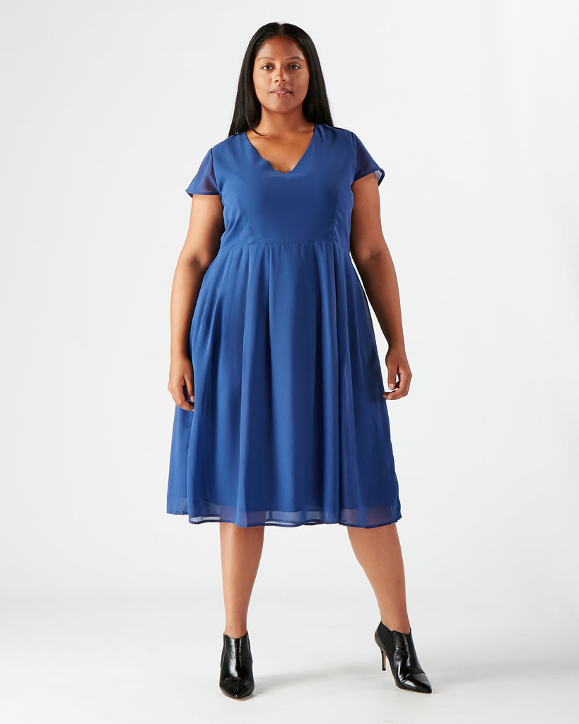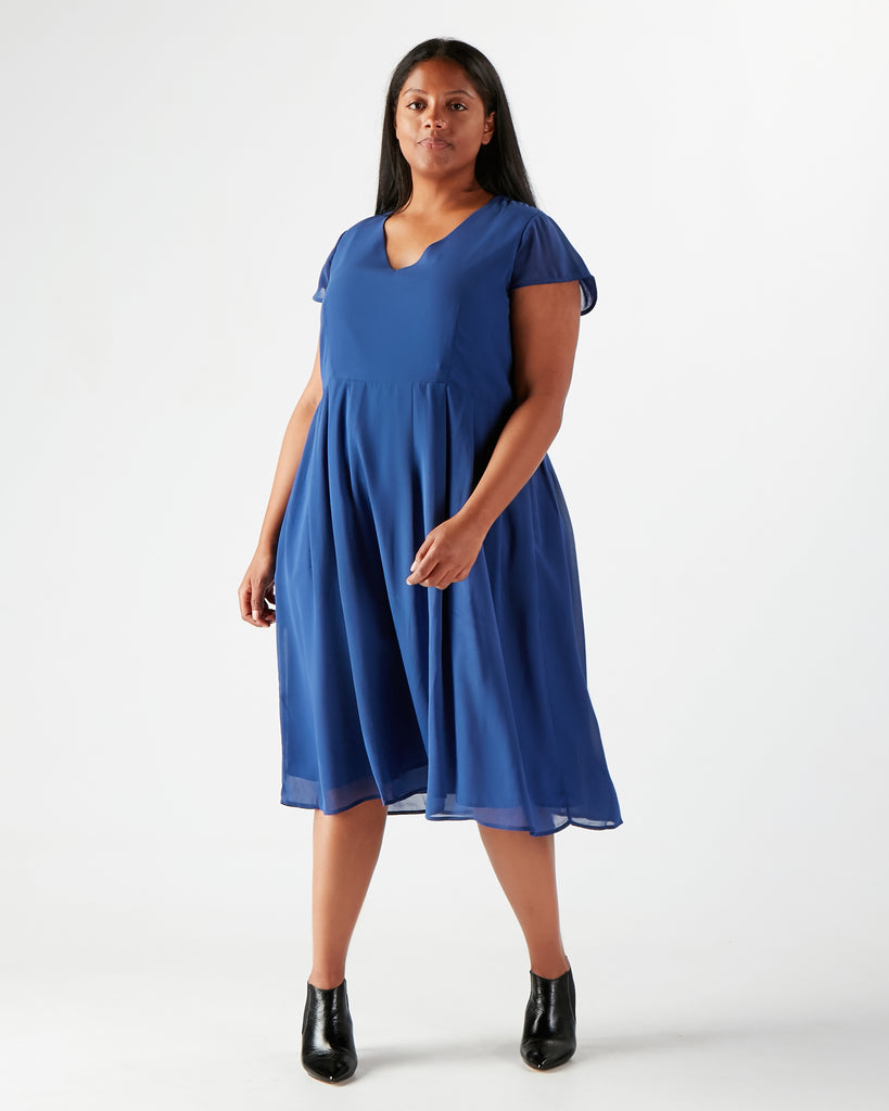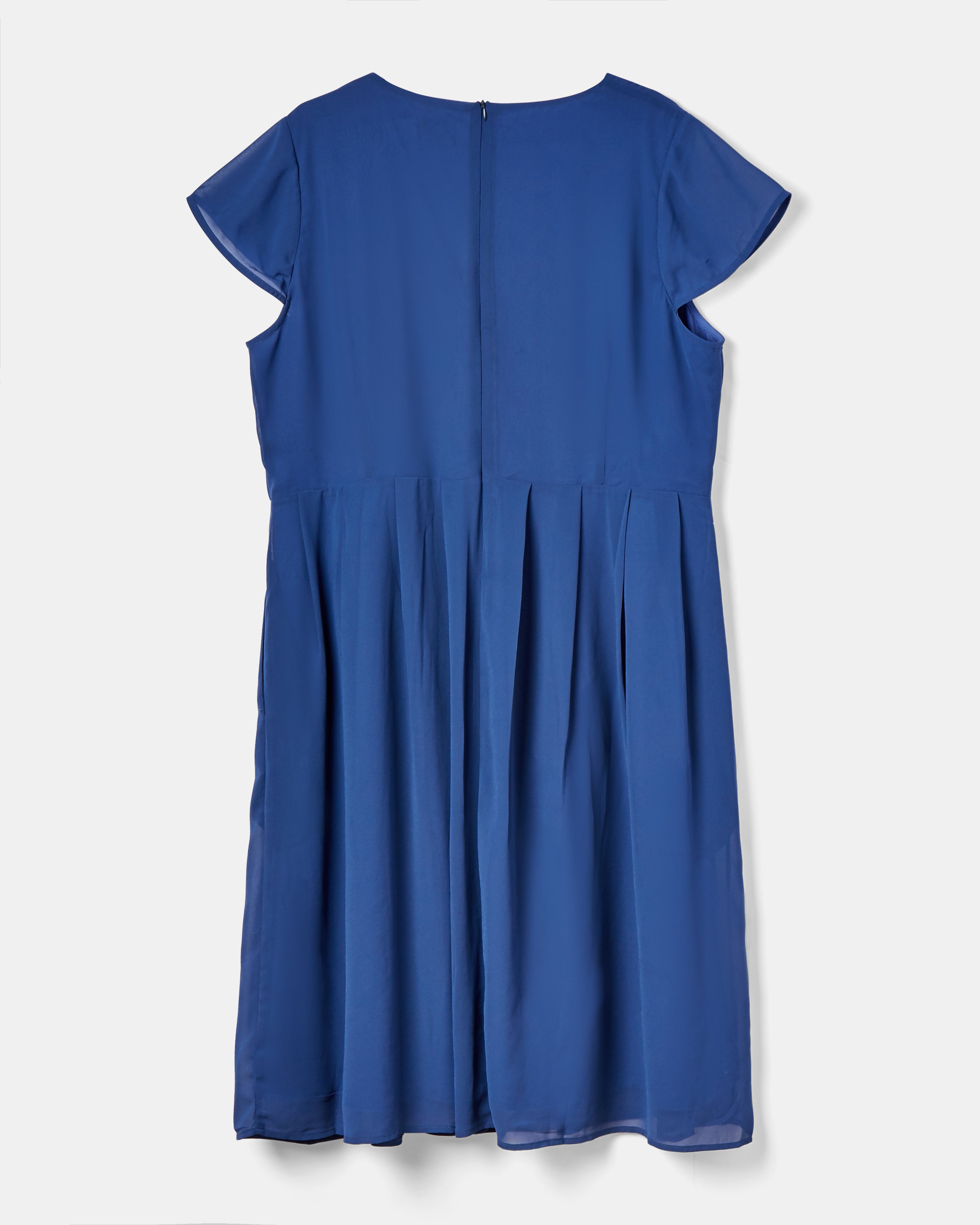 Make a statement in this elegant royal blue midi dress, designed with softly structured pleats and a gently curved V-neckline for a flattering, feminine silhouette. Fully lined for all-day comfort, it features a concealed back zip for a smooth finish and discreet side pockets for everyday ease.